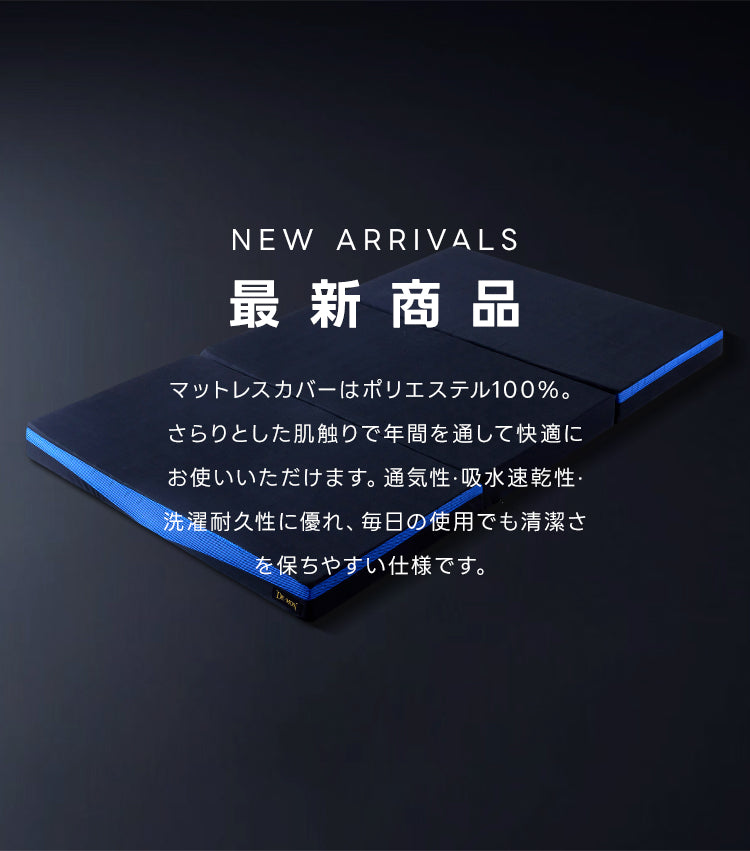 10cm厚なのに本当にしっかり支えてくれます。床置きでも底つき感がなく寝心地がよかったです。三つ折りで収納できるのも便利!